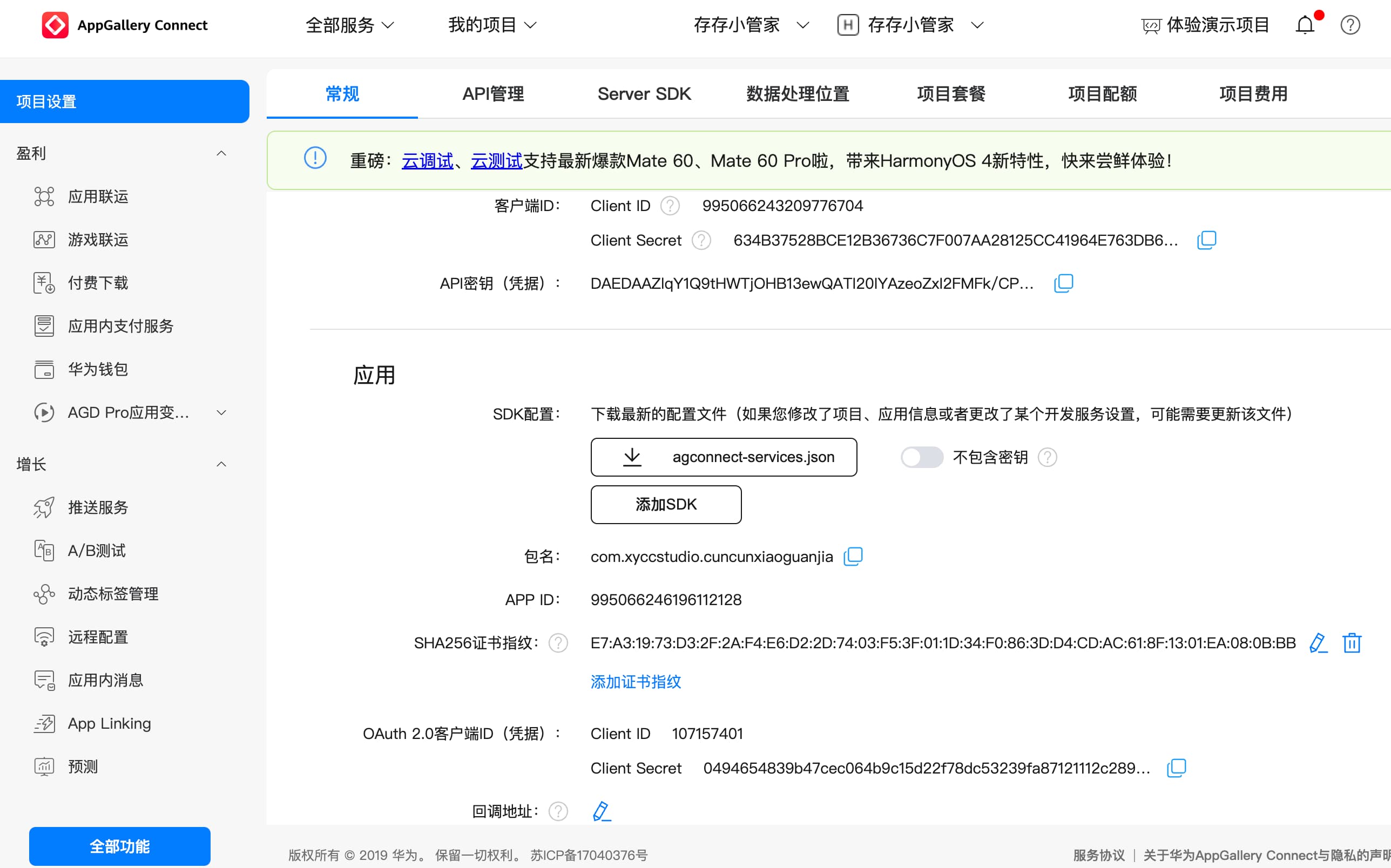 下边按步骤接入一下,需要提前准备一个AppGallery Connect账号。