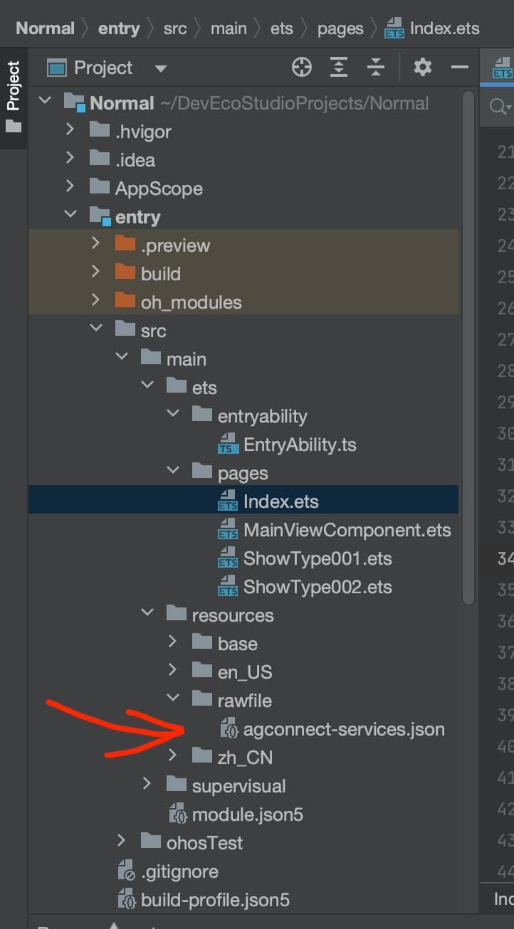 下载 agconnect-services.json,在AppGallery Connect项目配置->常规下边有这个文件的下载地方。
