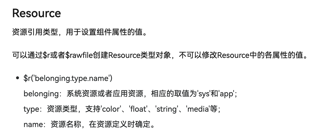 另外{资源引用的方式](https://developer.harmonyos.com/cn/docs/documentation/doc-references-V3/ts-types-0000001477981241-V3)